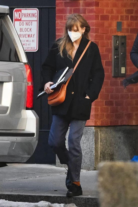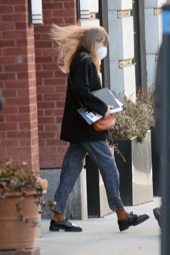 她与父母一起现身纽约,穿搭依旧是熟悉的味道。焦糖棕斜挎包与袜子呼应,加上黑色呢子外套和莫卡辛鞋,是霉霉擅长的复古文艺风。