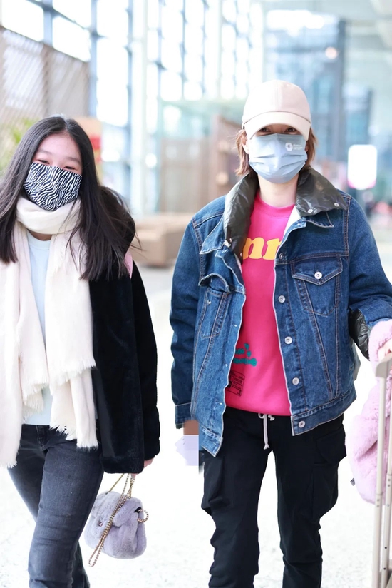 母女俩都是毛毛包+玫粉色单品,亲子装思路有的。