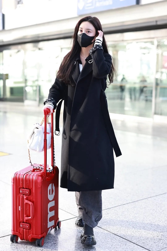 欣欣子这是还没从过年的氛围中走出来呢,一身红很喜庆。不过看样子妆发也停留在“慵懒”状态了,这时候墨镜就该出马啦,美其名曰增添时髦度。