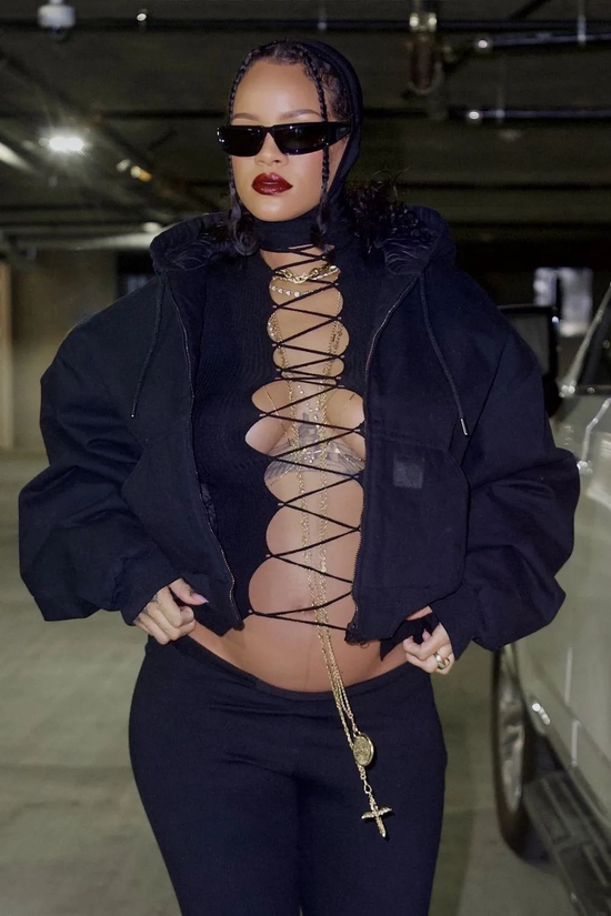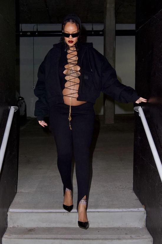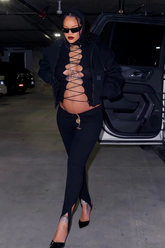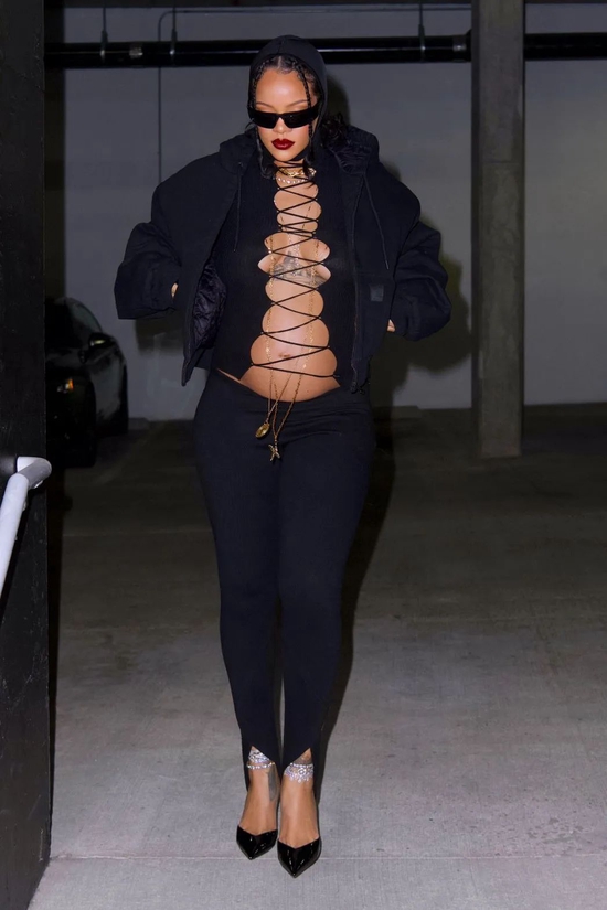 主题就是高调炫腹,抗冻从胎儿抓起。怀孕中的她也不能放弃????,Jimmy Choo超闪亮。暗黑装扮配上牛血色????,Slay全场。说她是最不怕冷的孕妇,没意见吧~