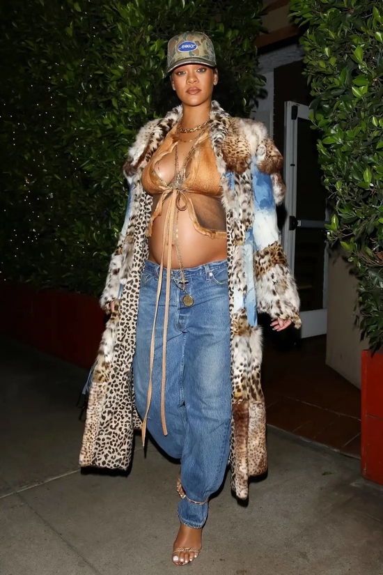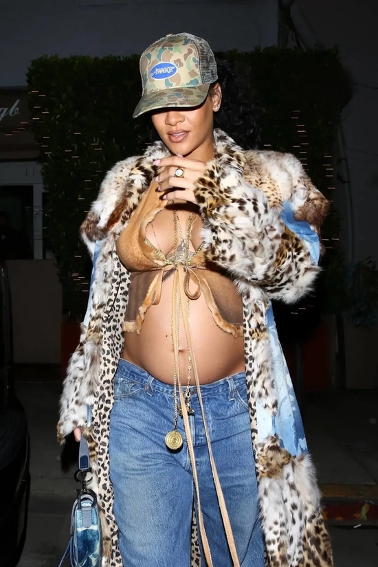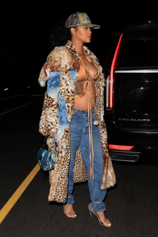 第二套“变本加厉”,牛仔豹纹皮草拼接长外套搭配露腹Top,Tom Ford的高跟鞋缠住牛仔裤,再玩玩长项链叠戴,整体吸睛度Max。就是吧,有“不怕死”的网友留言说:日日好像。。。好像西游记里面的猪八戒????。