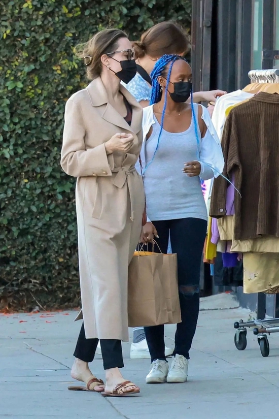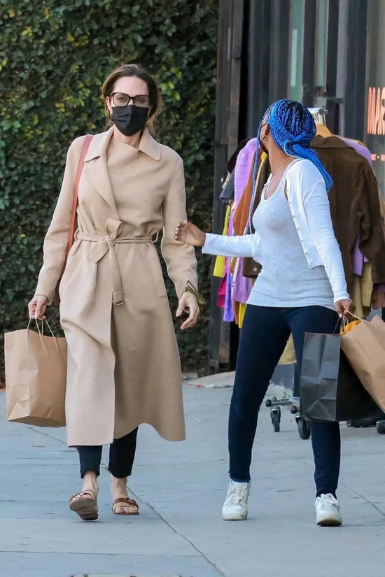 朱莉和女儿Zahara在洛杉矶外出购物,驼色大衣配凉拖,网友们都在发问:这是什么操作?哎呀洛杉矶温差大,穿衣看不出季节的人一大把~