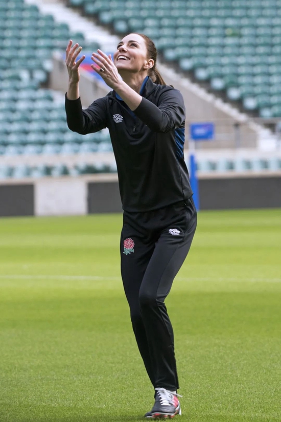 凯特在Twickenham体育场活动筋骨,绑上高马尾活力满满,这状态不要太好。