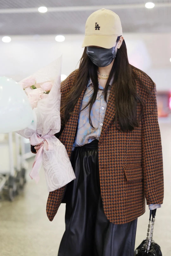 霏霏姐是已经支棱起来了,这全副武装的“复工”状态编辑爱看。棕色格纹外套里面是蓝紫色碎花衬衫,打破沉闷。乐福鞋配黑袜子修饰腿型,而且已经不怕冷地穿起九分裤来了哦,是迫不及待要一脚踏入春天的样子啦。