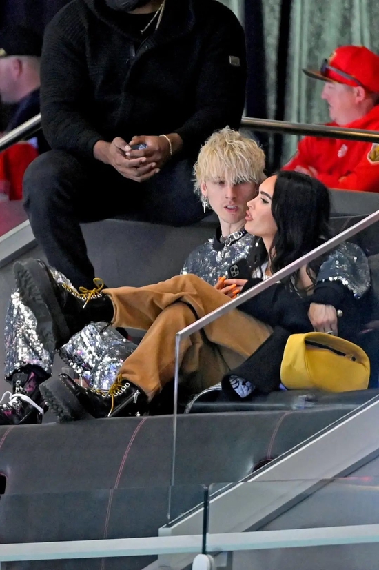 梅根与未婚夫在拉斯维加斯的T-Mobile竞技场观看2022年NHL全明星赛,相比穿得BlingBling的枪爷,梅根装扮低调,但这举手投足依旧不减女神范。大女人与小狼狗????,有磕到。