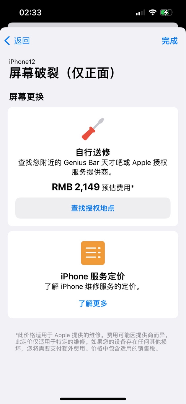 ・查看特定地点常见维修主题的预估价格