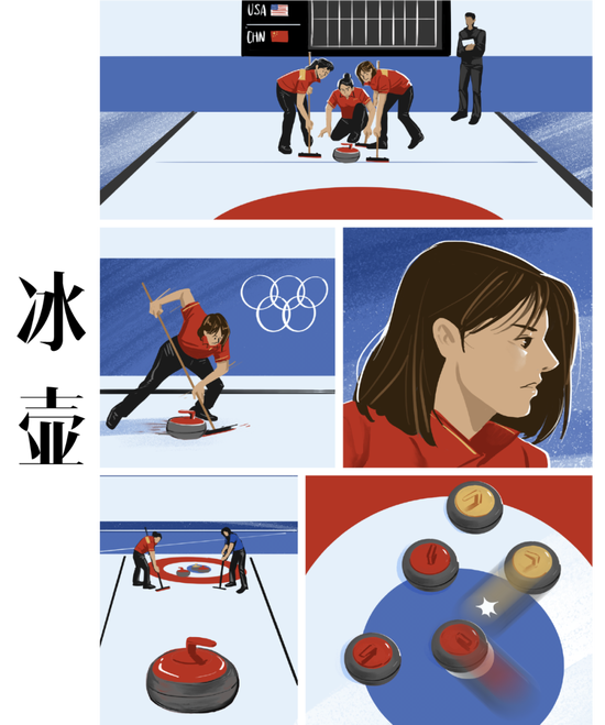 可以这么说,没有比冰壶更好玩的事情了。我一直是在二垒的位置,通常担任刷冰的任务。每当轮到四垒队员投球且这个球很关键的时候,我就会比较紧张了,我需要判断四垒投出的力量,听主将和四垒的指令,并决定自己开始刷冰的时机。