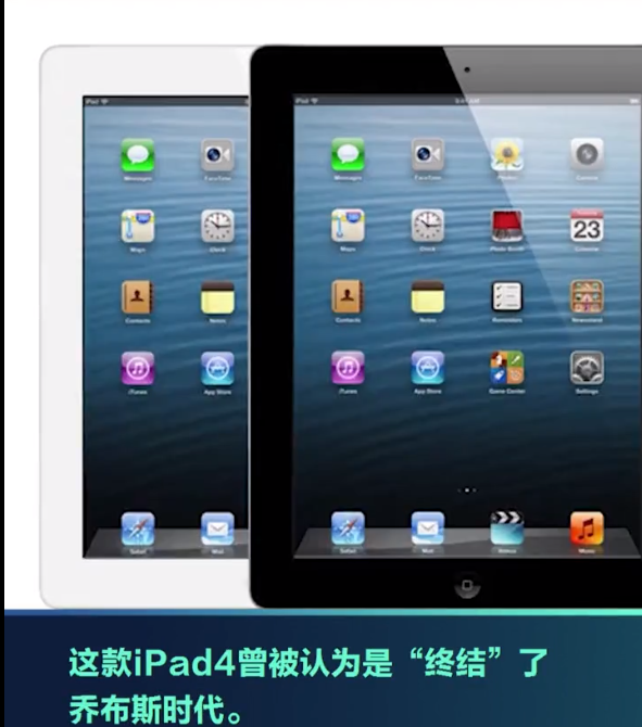 这款iPad 4曾被认为是“终结”了乔布斯时代。iPad 4于2012年11月发布,是首款配备闪电接口的iPad。除了在iPad上引入闪电接口,iPad 4的速度是前一代的两倍,图形质量则是前一代的三倍。它采用了一块9.7寸IPS视网膜屏幕,正面设有Home键,后置500万像素镜头。