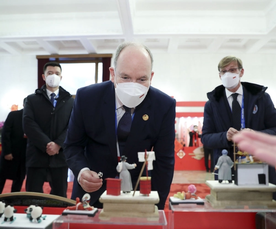 在人民大会堂举行的新春“庙会”上摩纳哥元首阿尔贝二世亲王被“冰墩墩”面塑所吸引他捏完一个“冰墩墩”还想再捏一个因为家里有一对双胞胎孩子如果只带回一个那就不好交代了