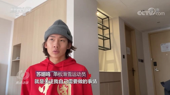 单板滑雪运动员苏翊鸣说:“对我来说,从来没有关注这些事情,因为在比赛中,我唯一要做的是关注我自己需要做的事情,我需要做的动作,把这套动作完成之后,其他的都不重要。”
