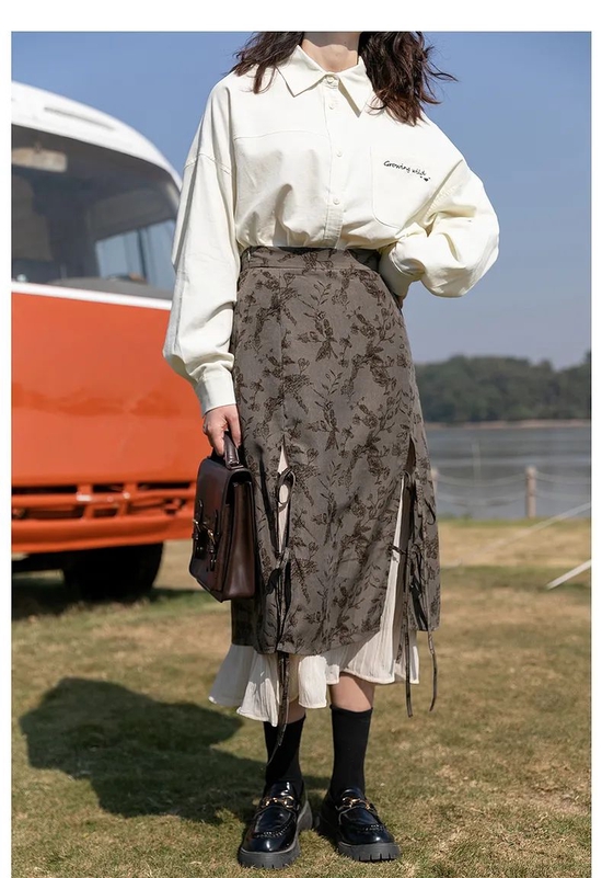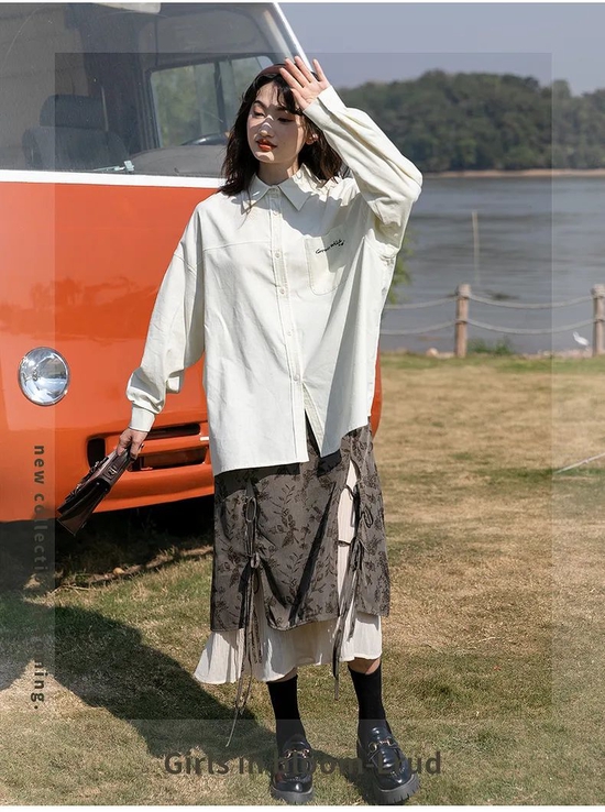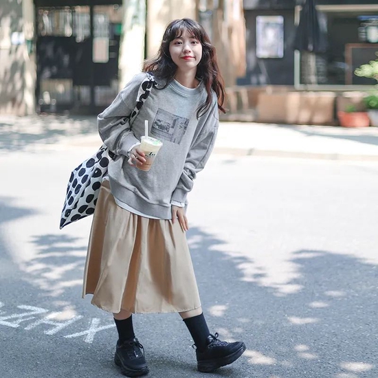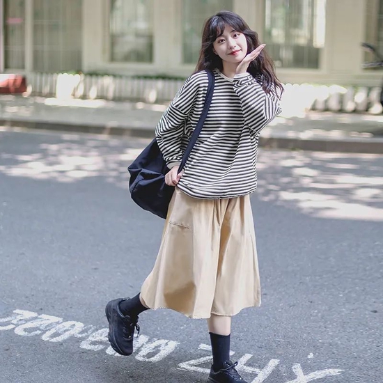 ????推荐理由:这件棉布材质的半裙休闲感满满,搭配一双马丁靴可以轻松穿出时髦感,宽松遮肉,显瘦效果好。