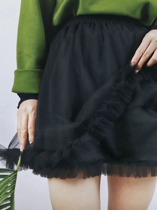 ????推荐理由:这件也是很有设计感的半裙,剪裁很立体,双层设计也安全,网纱搭配木耳边甜美度爆棚!