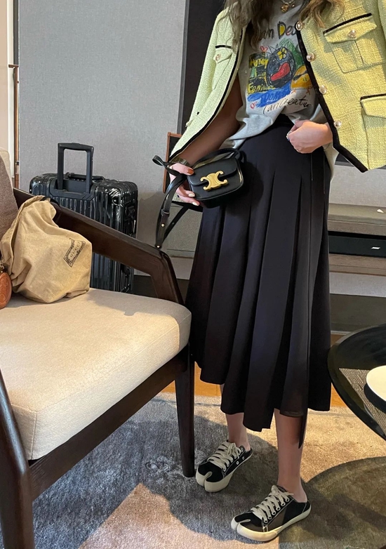 ????推荐理由:今天拖拖要给你们种草的最后一条半裙哦,百褶款式,有深粉色,很别致,不过也可以选百搭的黑色,选一件针织开衫搭配绝对不出错!