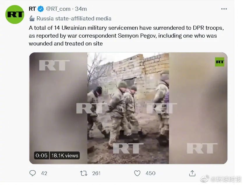 [乌克兰展示两名俄军俘虏后,俄方展示了14名乌军投降画面]继乌克兰官方展示了2名俄军士兵被捕的画面后(图1),俄方展示了14名乌克兰士兵投降的视频(图2)(来源:环球时报)