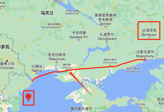 南部方面,俄罗斯军方已经确认接近赫尔松,同时现场报道也证实附近的沿海城市敖德萨、马里乌波尔、梅利托波尔均彻夜传出爆炸声。目前有关黑海港口城市敖德萨是否已经被俄罗斯拿下尚不明确,乌克兰方面仅确认黑海上的蛇岛(下图标注处)已经被攻占。