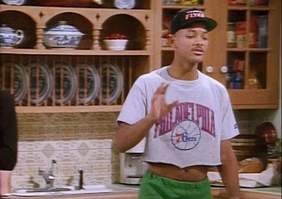 就连 Will Smith 在出演《 The Fresh Prince of Bel-Air 》期间,同样在屏幕上展示过一件宽松的短款球衣。