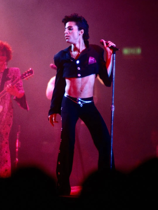 1986 年在温布利表演时,前文所提及到具有开创性的雌雄同体艺术家 Prince ,亦是首批摒弃运动服式穿着露脐上衣的人裙之一。只见舞台上的他穿着一件紧身裁剪黑色上衣,大方展示其无可挑剔的躯干。
