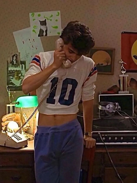 回顾于 1984 年,Johnny Depp 首部出演的恐怖经典电影《猛鬼街》中。他曾穿着一件裁剪过的 10 号球衣完成了他的电影处女作,也将男士露脐衫带到大众视野中。