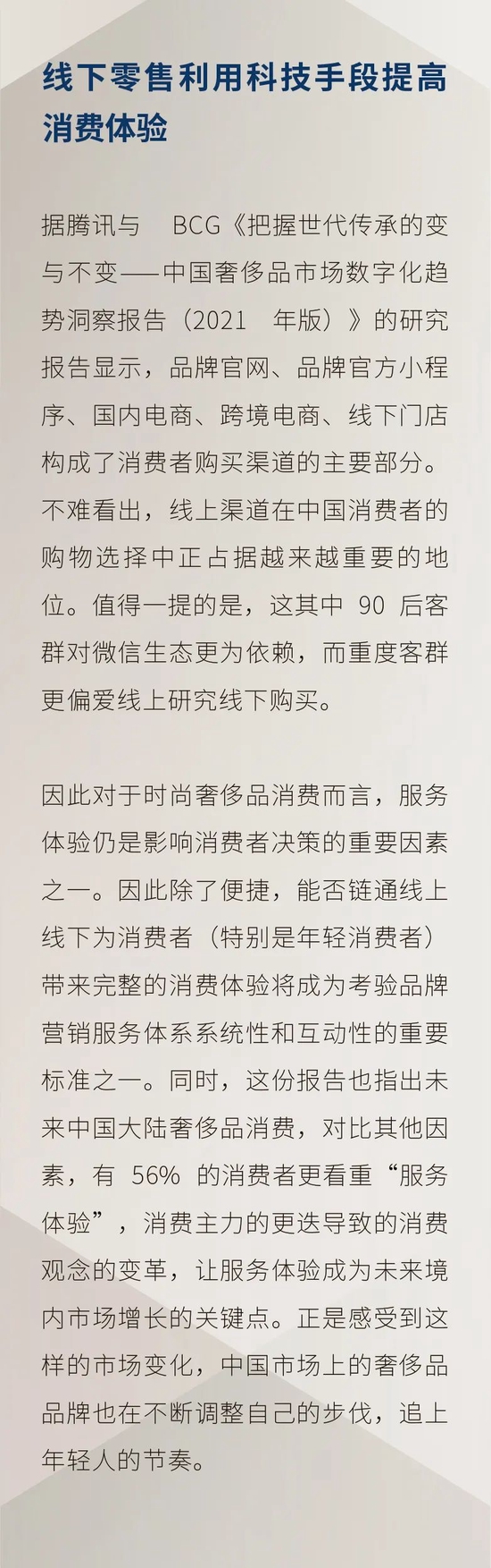 时尚产业在过去数年间,逐渐走进了以科技手段为主导的数字时代,大数据曾经一度成为唯一的革新标准,而所谓的零售创新更是被简单地定义为线上与线下的结合。然而,就在大家都认为线上渠道已成大势所趋之际,原本一直主攻线上赛场、并以数字技术为核心卖点的互联网技术产业,却已开始转战线下并走向实体化。科技与时尚这两大交情颇深的产业,在一系列线下场景营销举措中不谋而合。在数字技术给消费行为带来长期改变的情况下,实体场景以其强化品牌形象以及体验感的特性,愈发在两大产业中体现出关键作用。