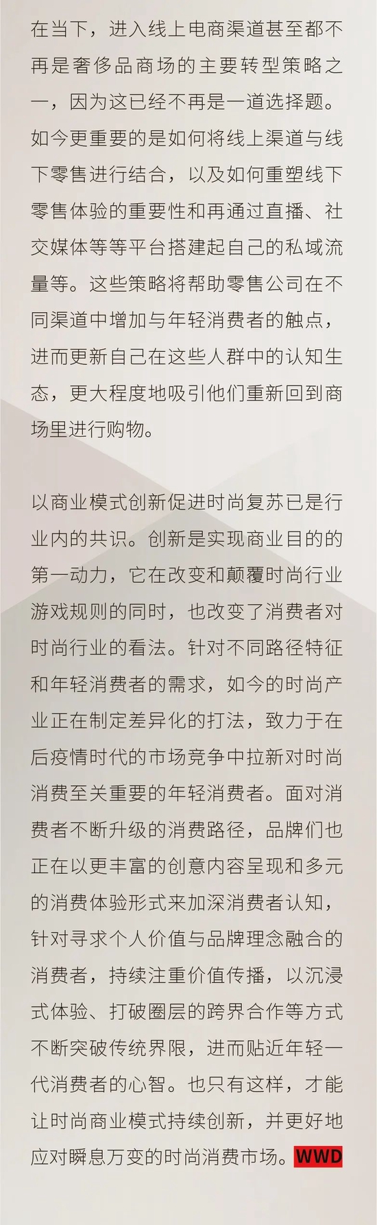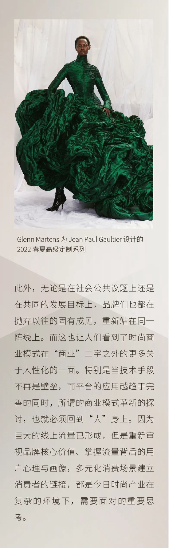 因此,WWD China 将在 2022 年继续从这五大维度中寻找到当下产业内外正在发生的改变和新生的需求,以趋势总结来一探行业的未来发展方向,从而为品牌、消费者、员工乃至整个社会带去启迪。