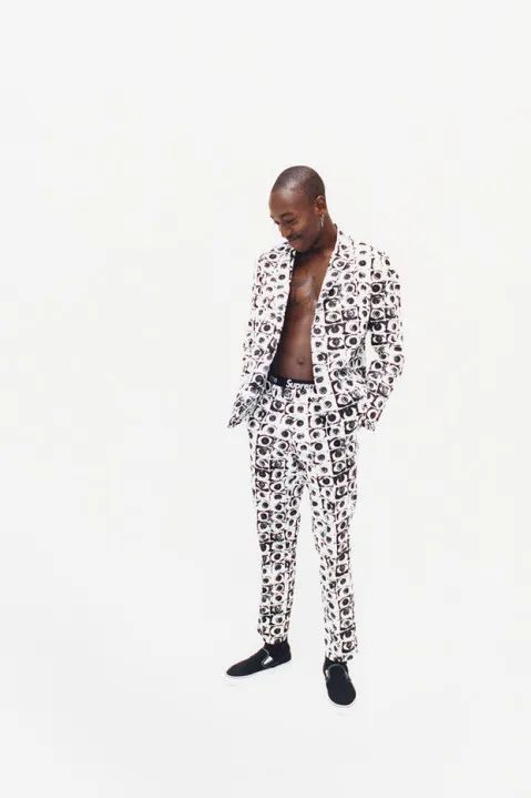 其实从 2018 年起,Supreme 每年春夏系列都会有一套美式西服,以往我们对街头品牌的概念通常都是 T恤、帽衫、夹克,而西装居然成为了 Supreme 的定番产品,至今已经连续五年了。