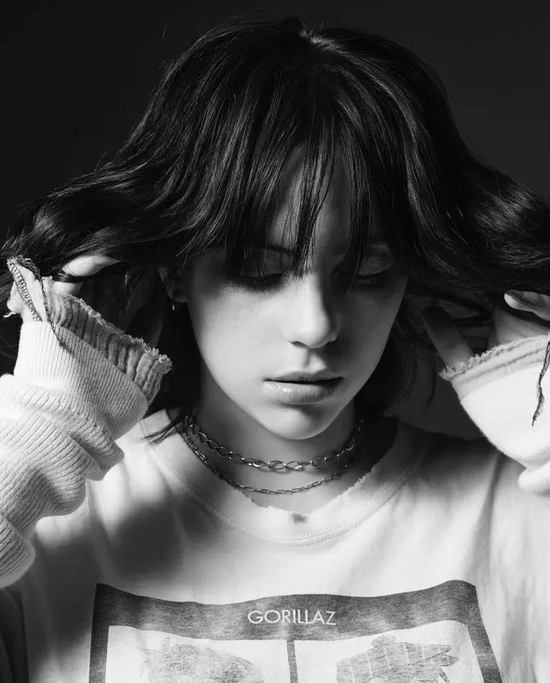 其中最引起话题的,无疑是封面图中,Billie 嘴衔一只蝴蝶样貌的金属饰品,为其拍摄的整体基调平添一份“Billie 味”,由于自身的抑郁症,Billie 的出道作品中,无论是音乐还是 MV 视觉风格,都有着浓厚的黑暗气息,被解读为“将死亡和精神病浪漫化”,而恰恰是这些作品,让 Billie 名声大噪,年少成名。