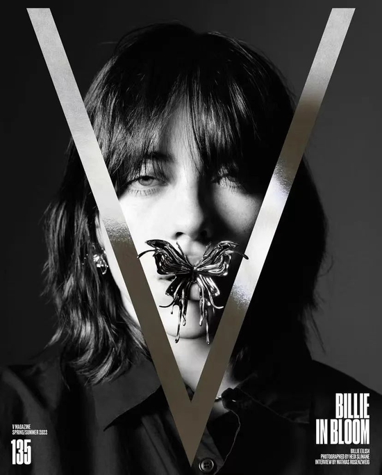 在《V》杂志第 135 期的封面与写真海报中,Billie 以染黑后干净利落的短发造型出镜,倍显青春活力,一改近年来其本人转型坚持的性感风,反而如同其刚出道时的惊艳,在此基础上又令人感受到沉淀与积累,此次封面与写真也由 Hedi Slimane 完成拍摄。
