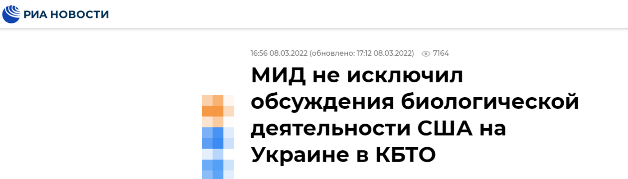 俄新社:(俄)外交部未排除在《禁止生物武器公约》框架内讨论美在乌生物活动的可能性