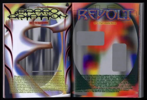 早在 2019 年,为了打破杂志的传统结构,《Tunica》杂志选择以充满实验性‘酸性设计’打造而成,将整个杂志变成一件艺术品;此外,德国独立刊物 《032c》 杂志也曾邀请设计师 Jonathan Castro Alejos 共同打造出浓郁酸性风格气息的视觉内容。