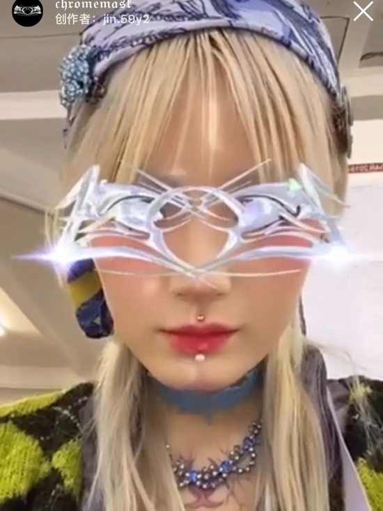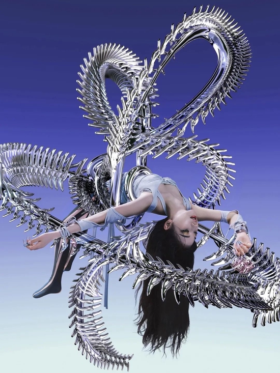 然而在社交网络时代火起来的趋势,必然离不开互联网和社交平台的助力。当酸性美学随着广泛的传播量与曝光度,从数字艺术家 Ruby 9100M 所创作的现实和虚拟间界限的数字超人类,再到 Shangjin Yu 打造的 Instagram 滤镜。