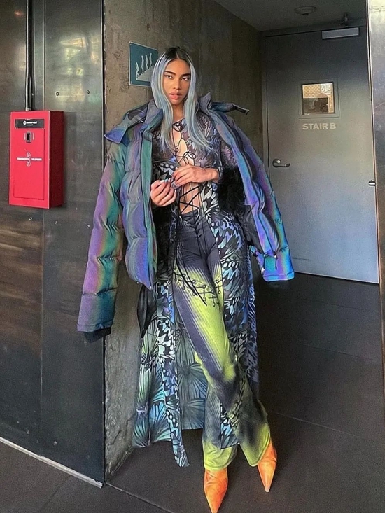 此外,品牌 AUNÉ 也同样以酸性色彩打造了一系列服装。就连近期引起火爆热度《Euphoria》的扮演者 Hunter Schafer 与 Barbie Ferreira ,都在剧中穿着 AUNÉ 服装出镜,将其带入大众视野之中。