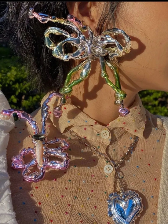 相较于服装,最能实现‘酸性图案’还是非配饰莫属。品牌们运用3D打印、金属元素在首饰上呈现酸性美学的实验效果,运用它实现抽象立体的轮廓及未来时尚概念,妥妥将它们打造成为时髦女孩们的绝杀技。