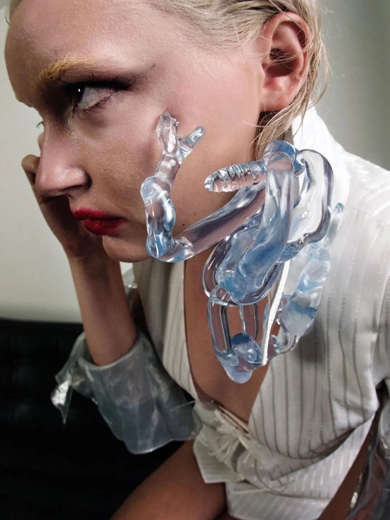 除了坚硬锋利的廓形以外,酸性液态状腐蚀、融化也同样能运用在配饰风格中。