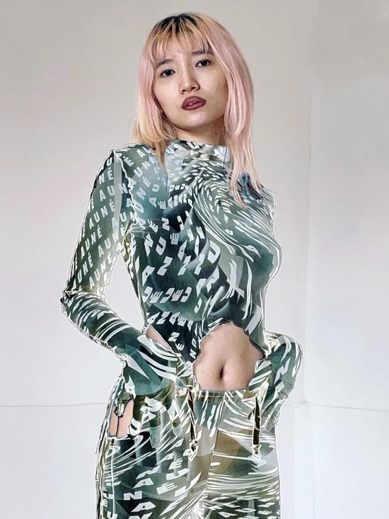 然而,时尚设计师并不满足于‘酸性美学’的 2D 平面诠释,渴求创新的新晋设计师 Izzy Du 也交出了一份与众不同的‘答卷’。