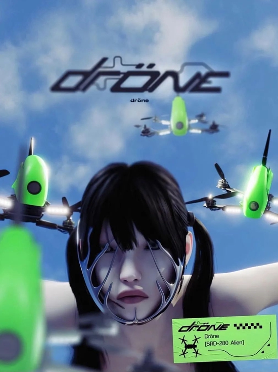 同样引人注目的是 aespa 各种回归海报、专辑封面及成员写真中,都能清晰地看到酸性设计元素的存在,宛若置身于仿生世界般,充斥着金属未来之感。