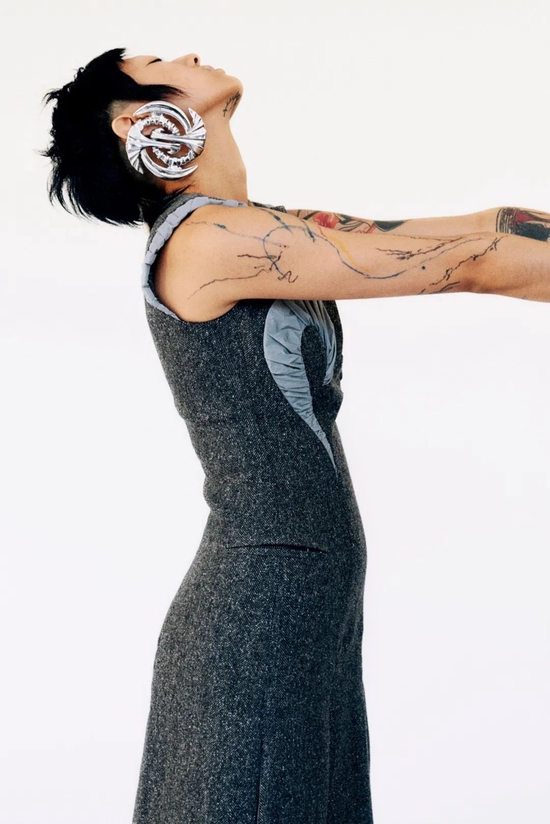 在本季回归带来一系列针织时尚服饰之余,亦邀请设计师 Yuma Burges 共同打造的耳饰系列,采用扭曲、镂空外观为柔软贴身的针织面料增添一丝硬朗廓形,将整体外观转变为更强大的视觉冲击。