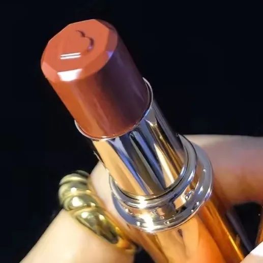 它的颜色介于奶茶色和豆沙色之间,粉调与棕调恰到好处的结合,让这支口红在温柔中夹带着些许少女感,就像是一杯甜而不腻的蜜桃特调一般,让人看见后就忍不住想要尝一口~推开后很水润,上嘴也不会拔干。