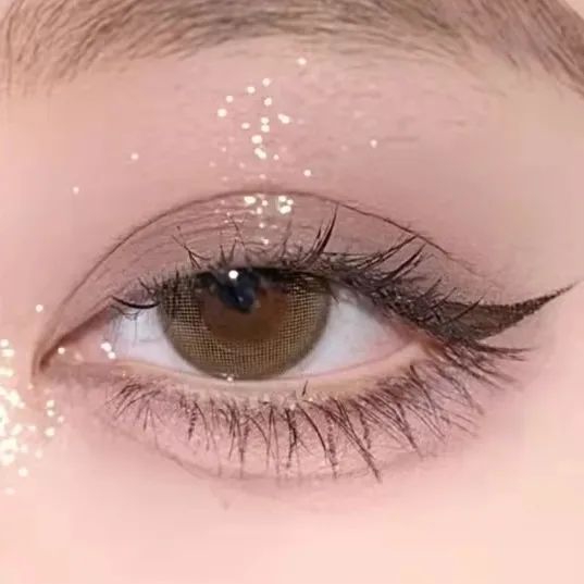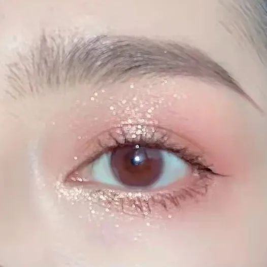 拖拖在画的时候喜欢先把哑光浅棕色大面积铺在眼皮上 ,然后蘸取珠光质地的裸粉色提亮眼头,最后用手指蘸取珊瑚粉亮片点涂在眼中,就会有一种忽闪忽闪的感觉,显得既乖巧又可爱~实在是太适合甜妹啦!