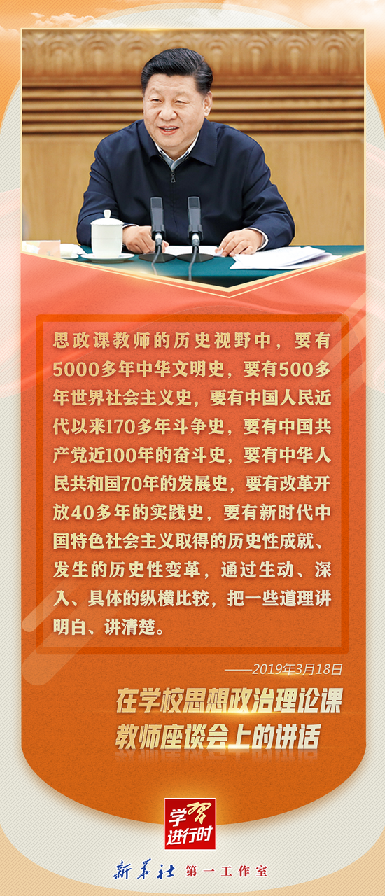 [编前语]思政课是落实立德树人根本任务的关键课程。办好思政课,是习近平总书记非常关心的一件事。新华社《学习进行时》为您梳理了总书记关于办好思政课的重要论述,与您一起感悟。