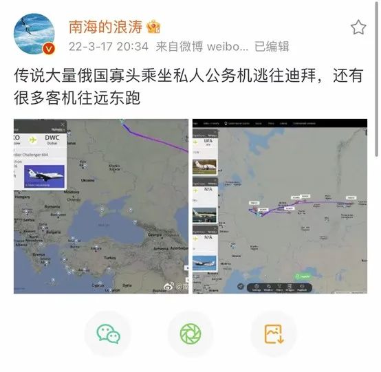 近日,有微博用户在平台发布数张飞行轨迹图,称“传说大量俄国寡头乘坐私人公务机逃往迪拜,还有很多客机往远东跑”。