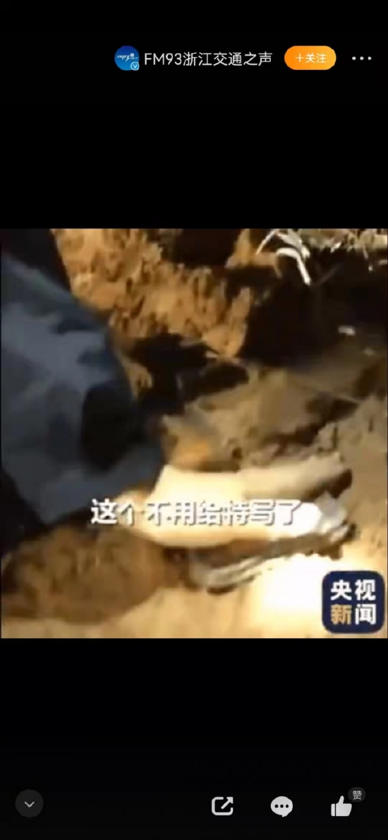 其中一块露出土面一人多高的残骸,在航拍画面中很难被发现,它曾被现场武警人员尝试用手搬开,但发现根本搬不动。残骸的一部分插入土里很深,无法搬动。搜救人员推测,很多飞机构件可能深埋废墟之下。