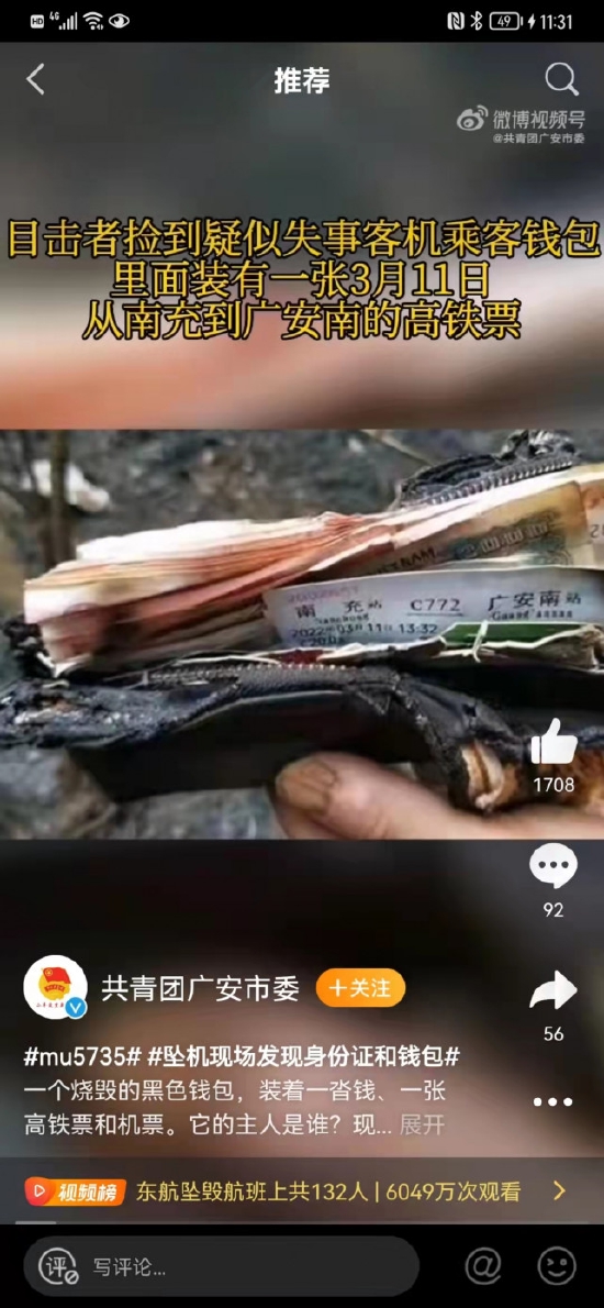 而在事故现场,留有残缺中国东方航空字样的残骸已经被保护起来,最初这块机身残骸视频在网络流传,一度被网友认为是搬运的国外假视频。彼时,他们希望MU5735已经顺利在白云机场落地,那里迎接的亲友,最终见到了想见的人。