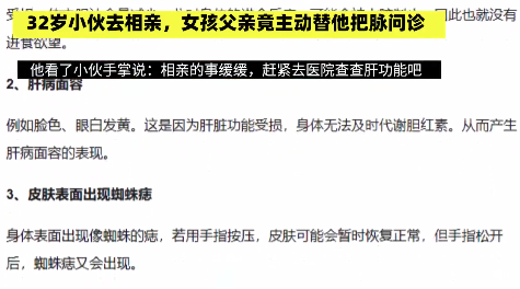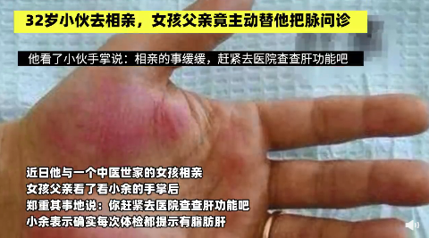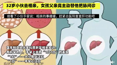 (原标题:男子相亲被女方父亲发现有肝病:相亲缓缓,赶紧去医院查查吧)
