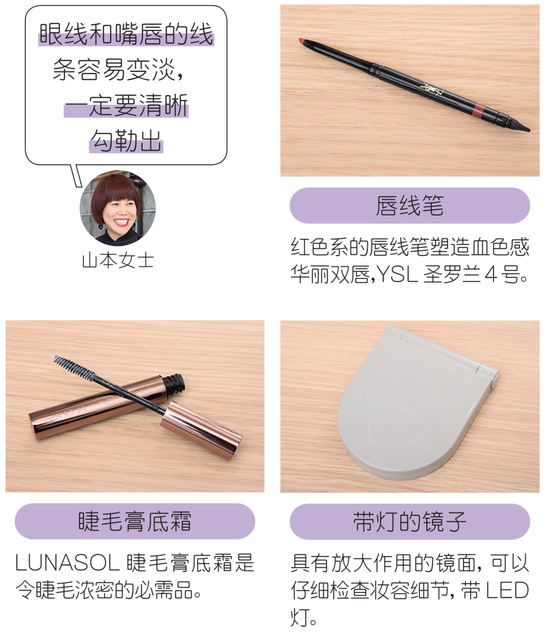 山本:放大镜也必不可少,年龄越大越要有经常观察自己脸的习惯。很多人女人都不看镜子。一看看放大镜,都连声拒绝道不想看,其实不正视现实就无法变美。