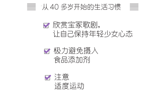 40岁后,很多人出现皮肤问题后迟迟难以修复。对此,两位的处理方法是“简单护理”。山本女士说:“皮肤表面粗糙的时候,涂上化妆水会将角质泡软,适得其反。” 在皮肤上涂上保湿或抗衰类的面霜即可。