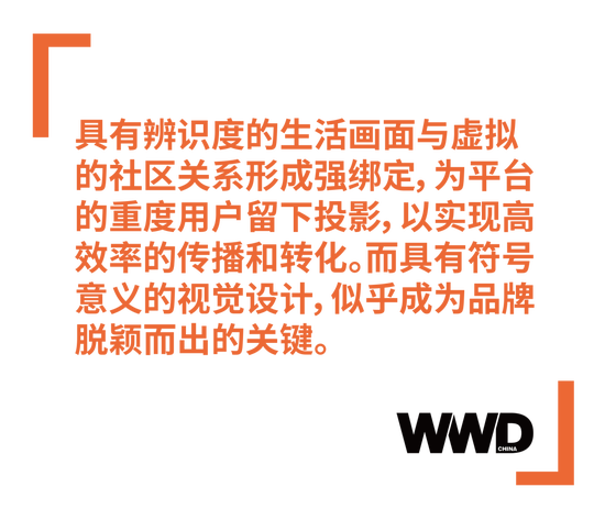 当本土社交媒体越来越像陌生人之间的朋友圈,种草分享的背后也就埋藏着更多线下场景。具有辨识度的生活画面与虚拟的社区关系形成强绑定,为平台的重度用户留下投影,以实现高效率的传播和转化。而具有符号意义的视觉设计,似乎成为品牌脱颖而出的关键。