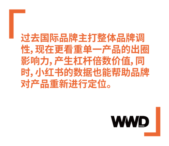 与多家国际一线品牌长期合作的杰弗里数字营销创始人盛雨阳告诉 WWD China,三年前从传统媒体辞职后,他便开始专攻国际品牌的本土化内容制作。根据盛雨阳的观察,过去国际品牌主打整体品牌调性,现在更看重单一产品的出圈影响力,产生杠杆倍数价值,同时,小红书的数据也能帮助品牌对产品重新进行定位。