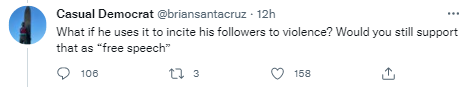 还有人担心,特朗普可能会用推特来“煽动暴力”。↓