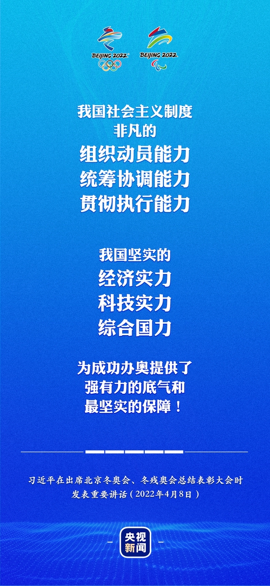 习近平:成就源于奋斗,胜利来之不易。回顾7年来不平凡的筹办举办历程,我们不仅在奋斗中收获了成功的喜悦,也在奋斗中收获了丰厚的精神财富,收获了弥足珍贵的经验,值得我们倍加珍惜、发扬光大。
