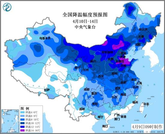 降温预报:预计10日至11日,冷空气主要影响新疆、西北和华北地区,12日至14日影响东北地区、河南、山东及南方大部,气温普遍下降6~10℃,内蒙古、山西、河北、山东、河南、吉林等地部分地区降温幅度可达12~16℃,局地16℃以上,白天最高气温降幅明显;以郑州为例,今天下午郑州气温已达34℃,14日白天最高气温将降至17℃,气温“腰斩”。